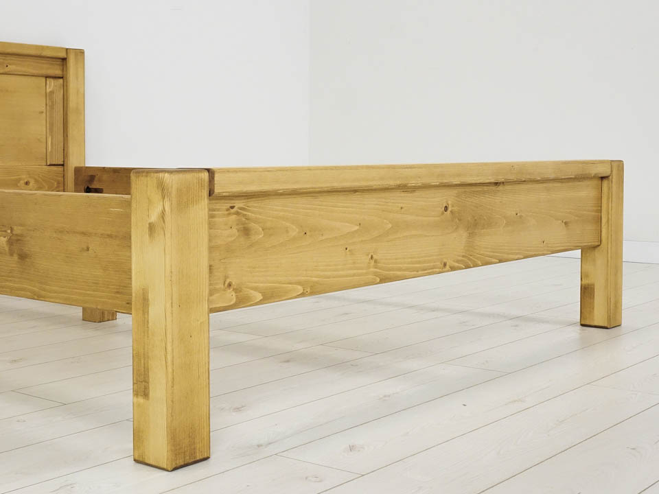 Łóżko drewniane Sara wykonane jest z wysokiej jakości drewna świerkowego naturalnego, które wyróżnia się wysoką odpornością i wytrzymałością na lata. Mebel zabezpieczony jest olejem w ciepłym odcieniu miodu, dzięki czemu idealnie nadaje się on do pomieszczeń o małym metrażu, ponieważ pozwala on na ich optyczne powiększenie. Model ten składa się z zagłówka, dzięki czemu można się na nim wygodnie oprzeć, co sprawia, że staje się miejscem nie tylko do spania, ale również do relaksu. Pięknie uniesione i wyrzeźbione nogi znacząco ułatwiają sprzątanie, ponieważ z łatwością można dostać się odkurzaczem pod łóżko. Mebel ten pozwoli Ci więc zachować porządek w całym pomieszczeniu.