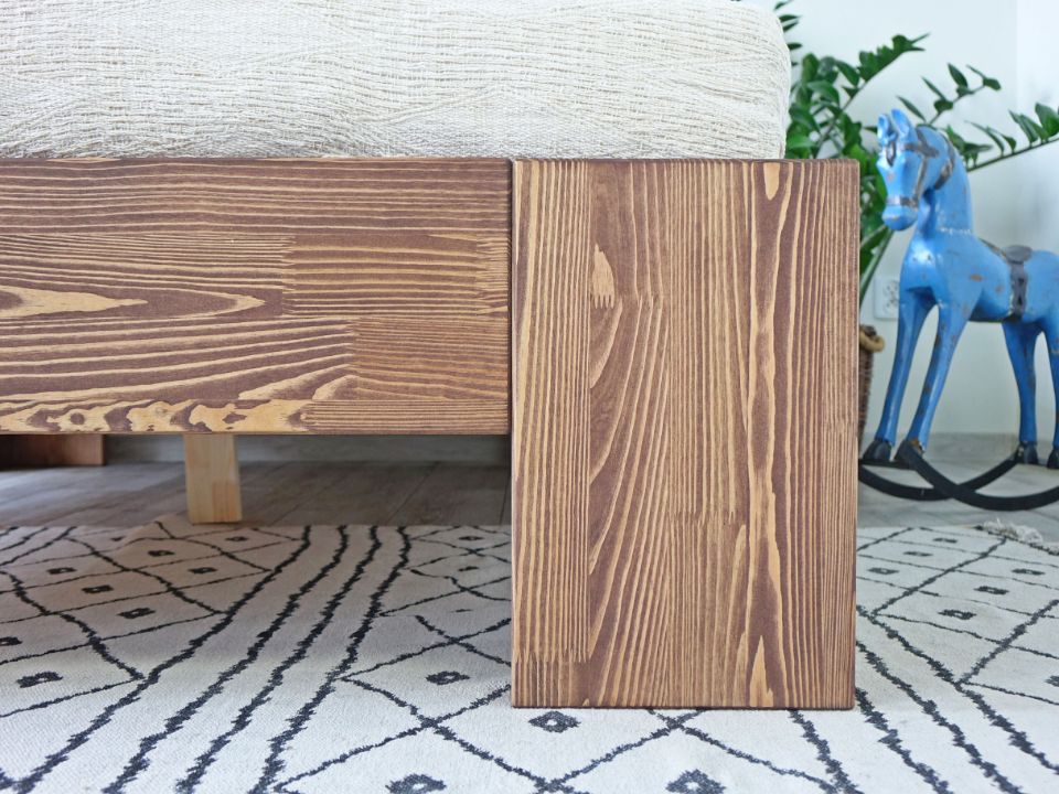 Komfortowe i nowoczesne łóżko z litego drewna sosnowego idealne dla miłośników ponadczasowej prostoty. Elementy konstrukcyjne takie jak rama czy nogi mają aż cztery centymetry grubości, natomiast wezgłowie dwa centymetry grubości, dzięki czemu łózko nam posłuży przez długie lata.